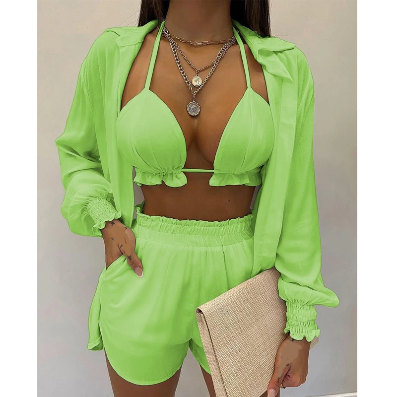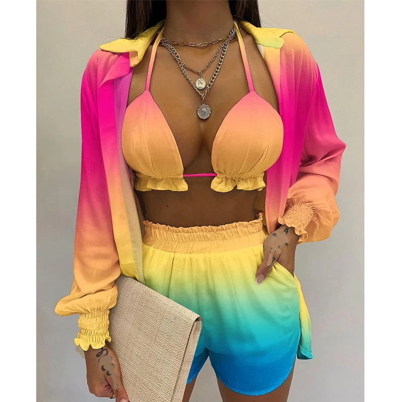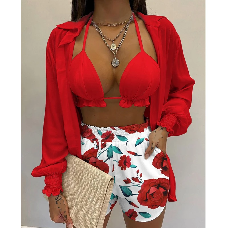 Wholesale Dropshipping Womens 3 Piece Floral Swim Suits Women Swimwear Beachwear Sexy Bikini Set